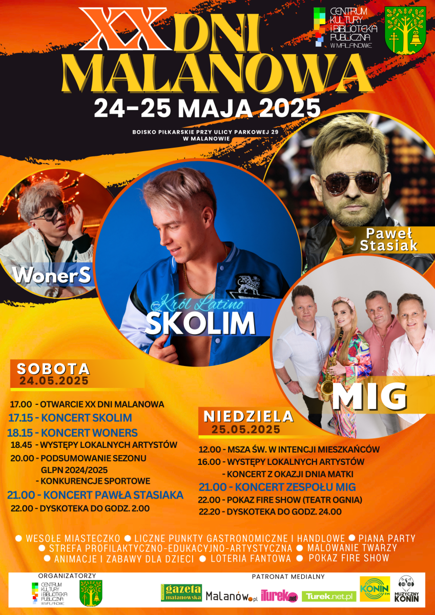 29 maja, 2025 Plakat Pozostałe aktualności 29 maja, 2025 Dni Malanowa – święto, które łączy nas od dwóch dekad - artykuł 29 maja, 2025 Galerie Fotografii XX Dni Malanowa 29 maja, 2025 Media o nas 29 maja, 2025 Multimedia